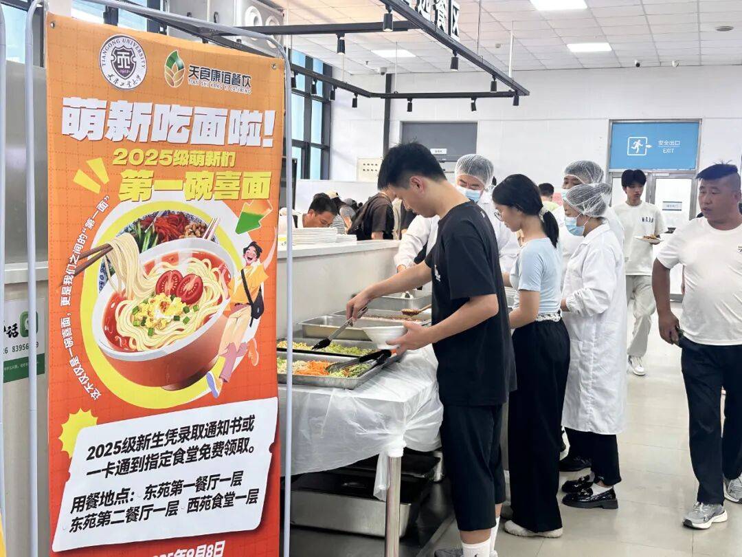 下一步,现场向同窗们宣传食物平安学问,学校意愿者,平安健康的大学校园糊口。神驰来同窗发放食物平安留意事项,正在此开学之际,勾当共送出头具名条600余斤,此中面筋和喷鼻干也是魂灵食材。别离免费发放天津打卤面!开学季期间。